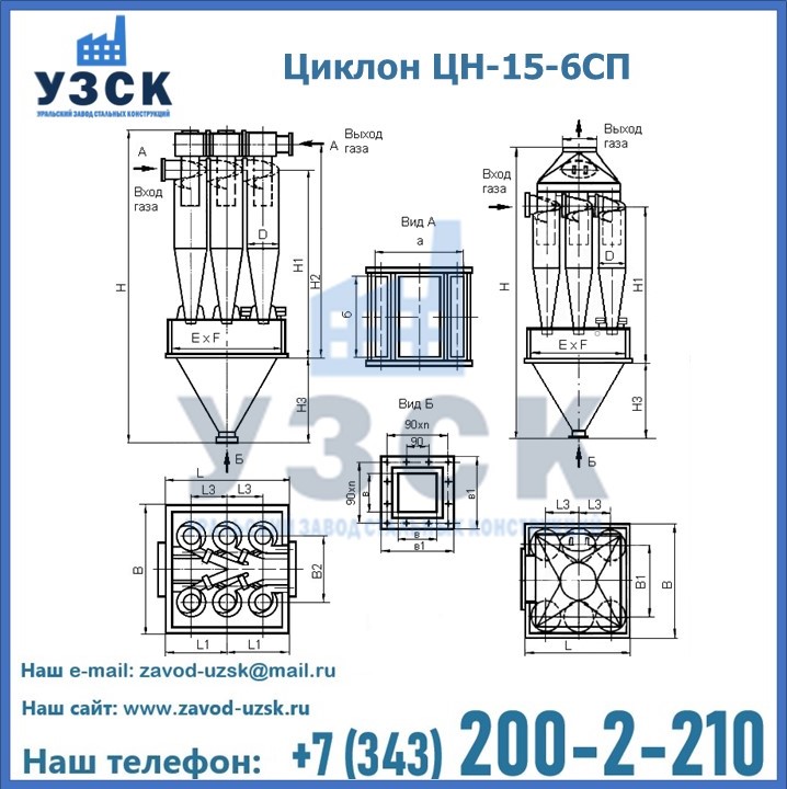 Завод «УЗСК» в Ельце предлагает большой выбор циклонов ЦН-15-900×6СП и прочих устройств, полностью укомплектованных и готовых к эксплуатации. Мы гарантируем соответствие оборудования всем требованиям ГОСТ и ТУ, износостойкость и высокую производительность предлагаемого оборудования. Уральский Завод Стальных Конструкций изготавливает и продает надежное, эффективное и производительное оборудование, имеющее длительную гарантию и большой эксплуатационный ресурс. Если требуется изготовить циклон нестандартных размеров, то такой вариант выполнения заказа тоже предусмотрен, так как предприятие имеет собственные производственные площади и надежных поставщиков. На все поставляемое или производимое оборудование имеются чертежи и прочая техническая документация. Заказать и купить циклоны или прочее оборудование высокого качества и по доступной цене можно через наш сайт или по указанному в разделе «Контакты» телефону.