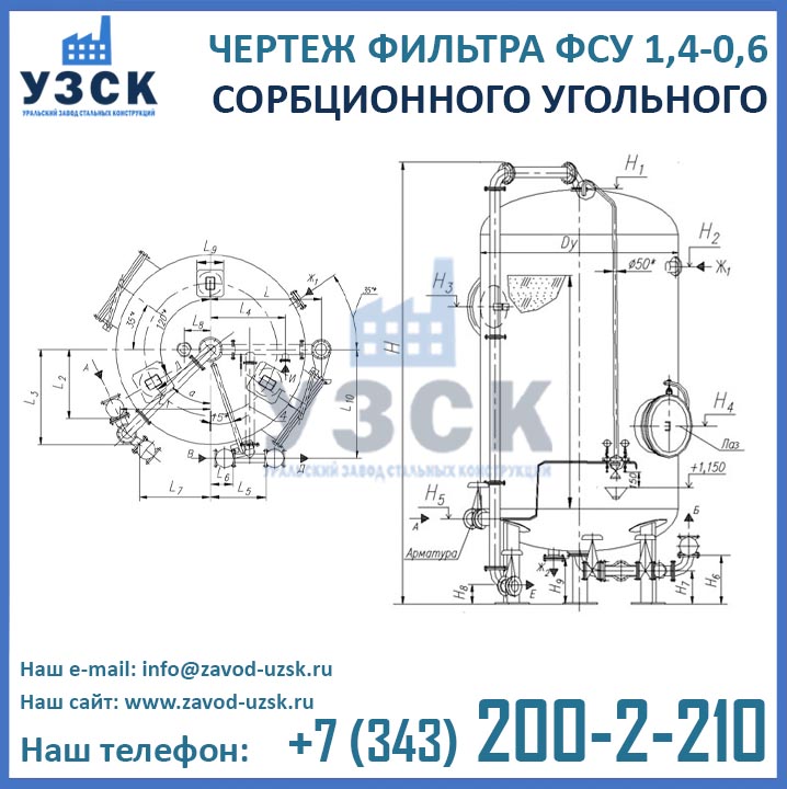 Если вы ищете фильтры ФСУ-1,4-0,6 в Ельце от изготовителя, то Вы на правильном пути! Уральский завод стальных конструкций – непосредственный производитель сорбционных фильтров ФСУ, предлагающий самые выгодные цены на ФСУ-1.4-0.6 в Ельце. По окончании процесса производства угольные фильтры проходят гидравлические испытания пробным давлением 0,9 МПа на аттестованном гидростенде, находящимся в собственности завода УЗСК. Мы гарантируем высокое качество выпускаемой продукции, и в этом уже убедились ведущие предприятия промышленного сектора России и стран ЕАЭС (см. раздел «Наши клиенты»).